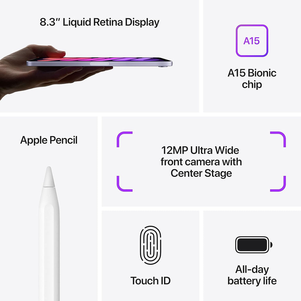 Perfect for reading, browsing, note-taking, gaming, and entertainment, the iPad mini 6 combines power, portability, and versatility in a refined Apple design.